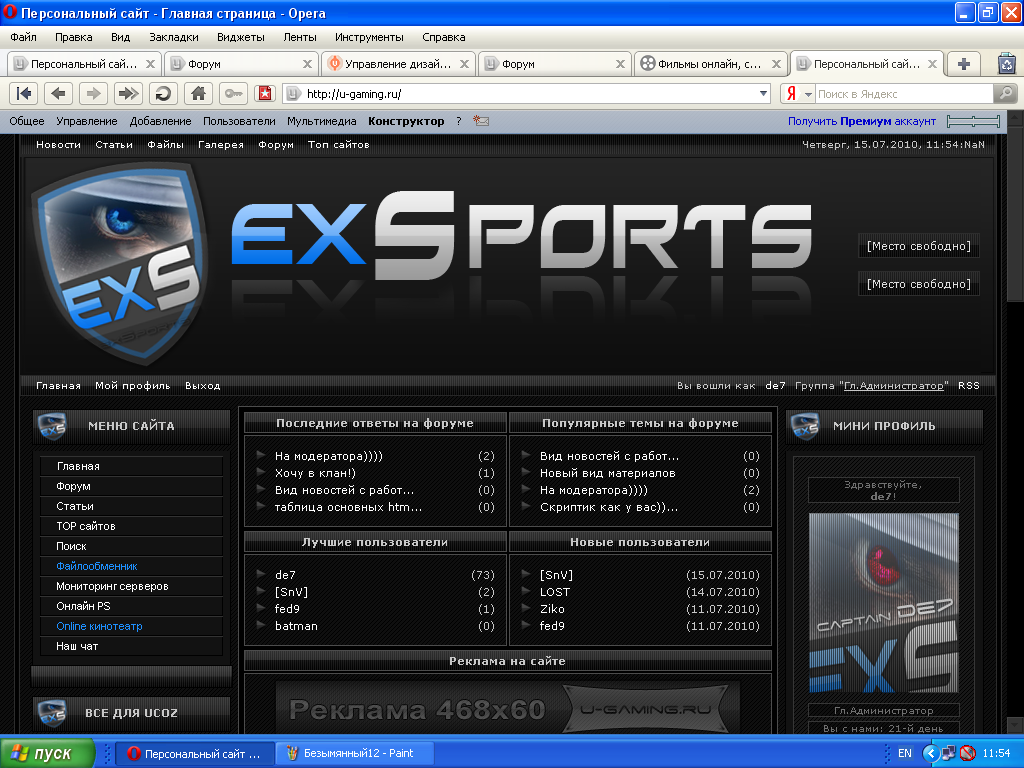 Красивый темный шаблон ехспортс Оригинал exSports 2010